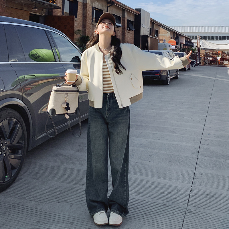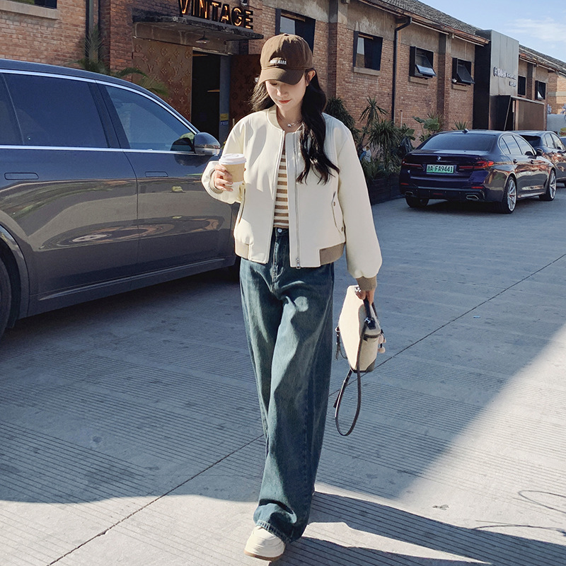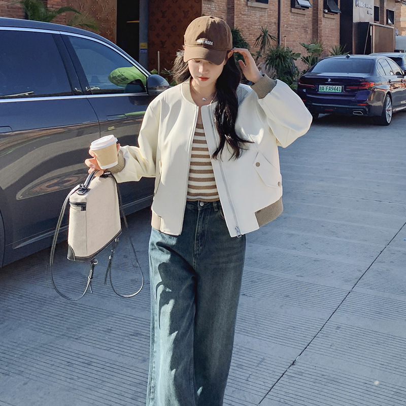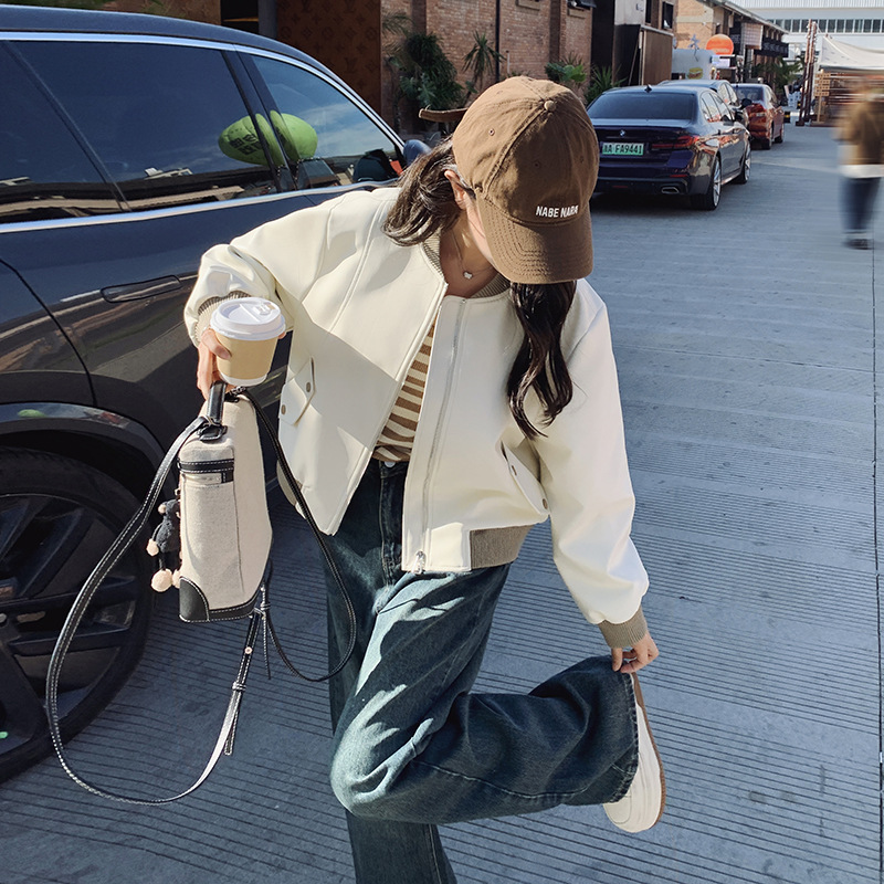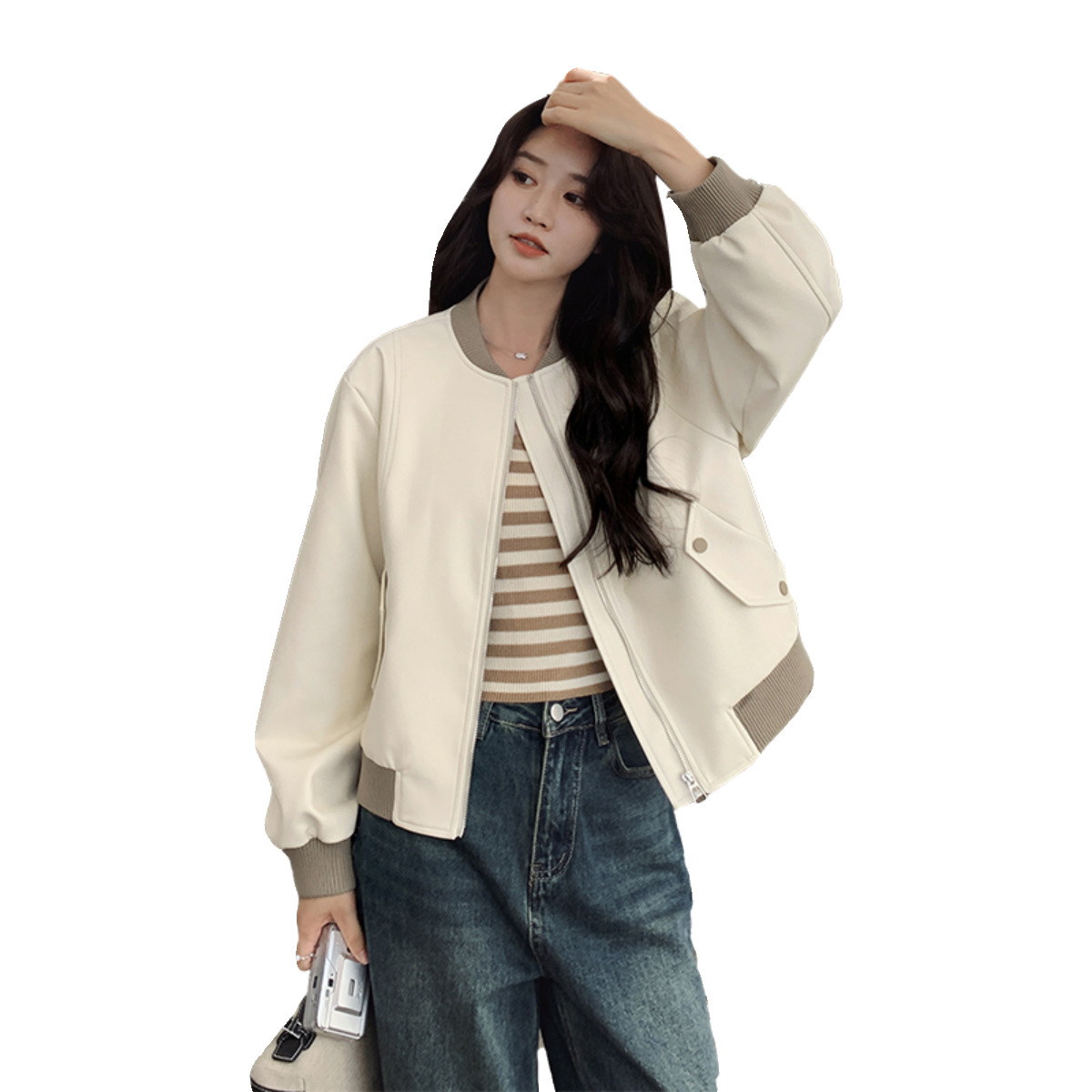 | nameOriginal | Wholesale small contrast collar loose profile short style casual fashion Joker beige leather coat women |