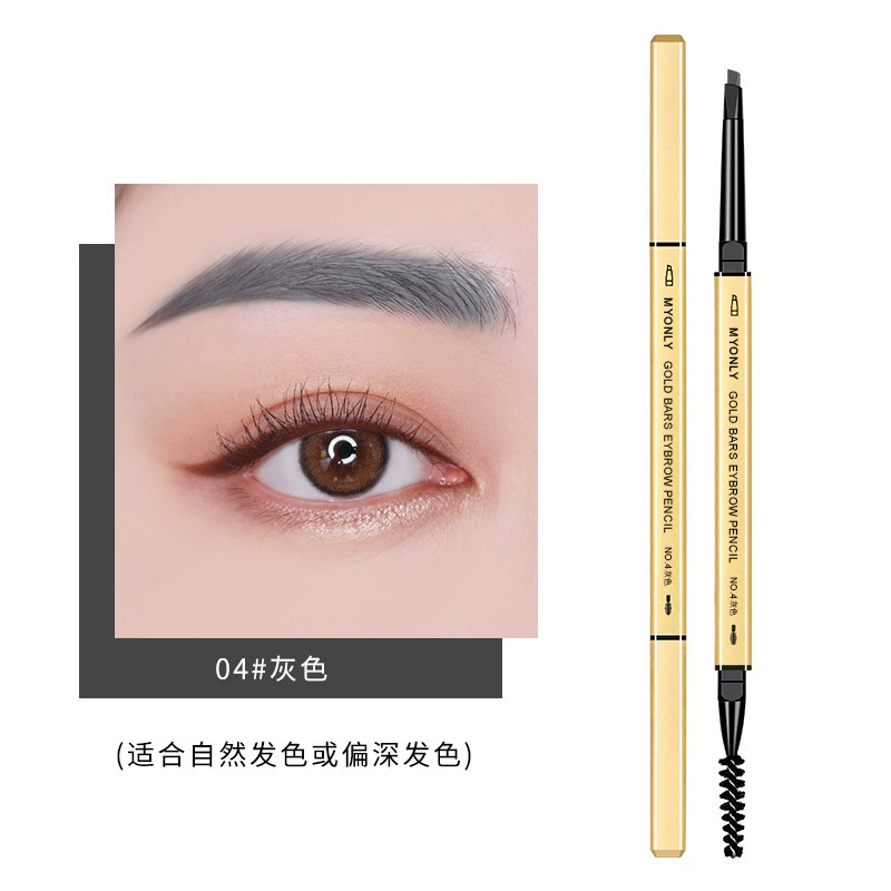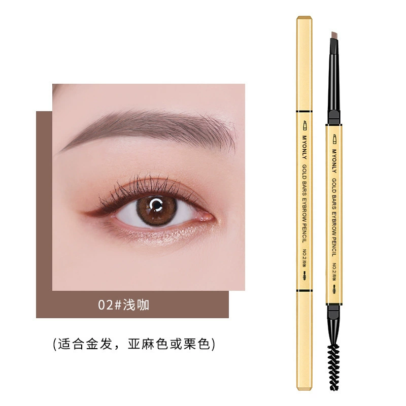 [Wholesale] Small gold bar double-ended eyebrow pencil for women, waterproof, sweat-proof, long-lasting, non-fading, natural and ultra-fine wild eyebrow pencil