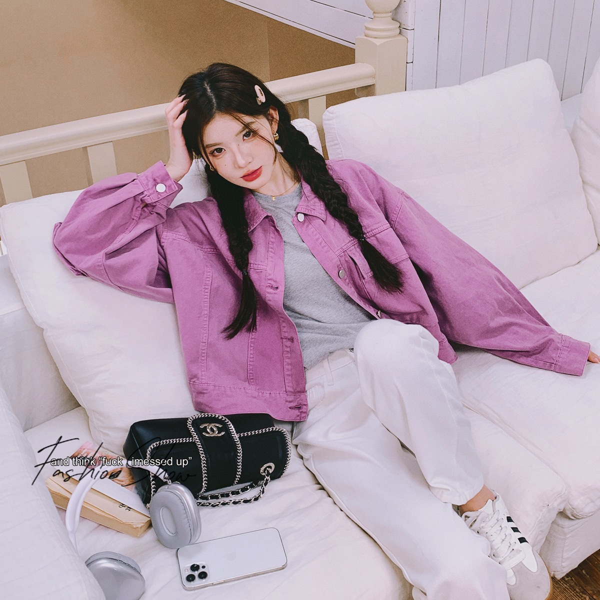 | nameOriginal | Wholesale small sweet cool casual lapel loose single-breasted chic purple pink large pocket Denim short coat for women |