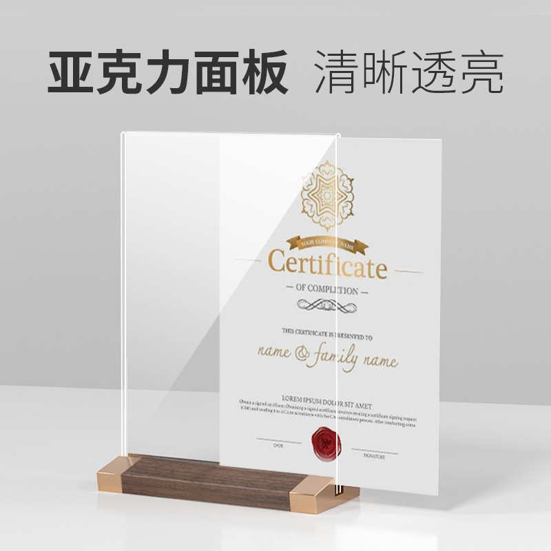 | nameOriginal | Wholesale solid wood table card display card desktop vertical price display card a4 acrylic table stand T-type a5 Crystal meal |