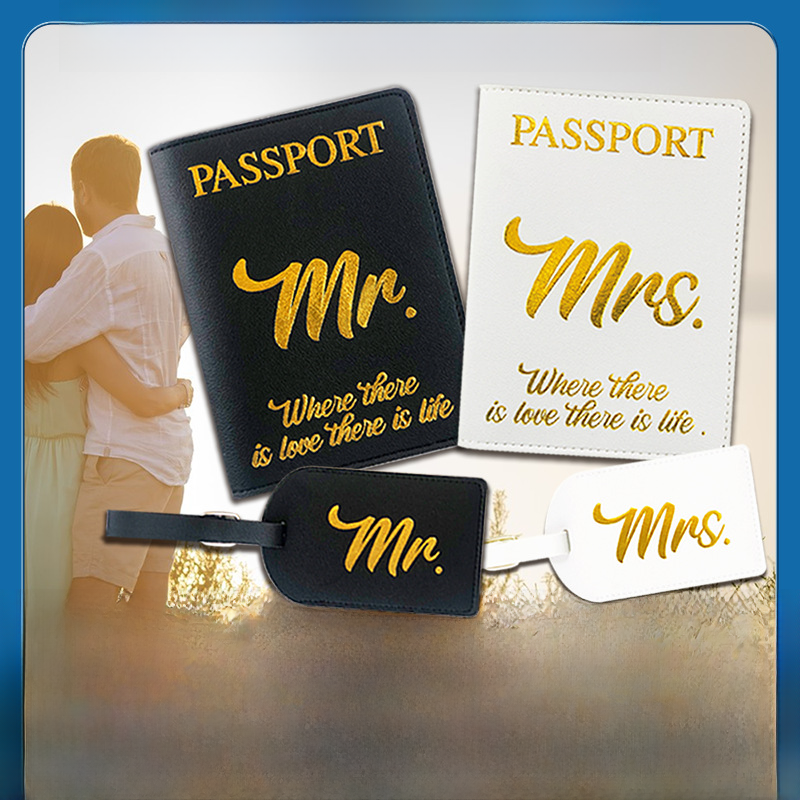 | nameOriginal | Wholesale spot cross-border pu leather black and white couple travel identification bag Mr Mrs Passbook holder luggage tag set |