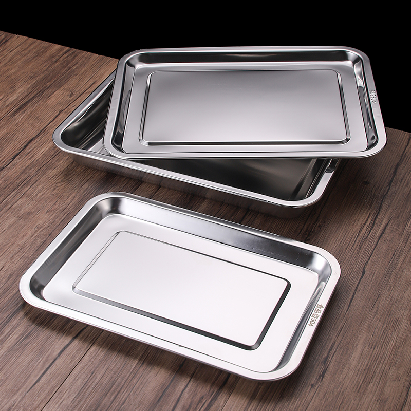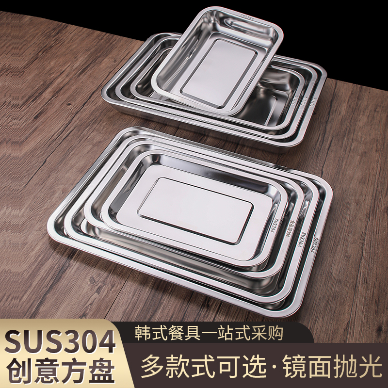 Wholesale Square Plate 304 Stainless Steel Plate Rectangular Grilled Fish Plate Barbecue Plate Commercial Household Thickened Dinner Plate Dish Plate