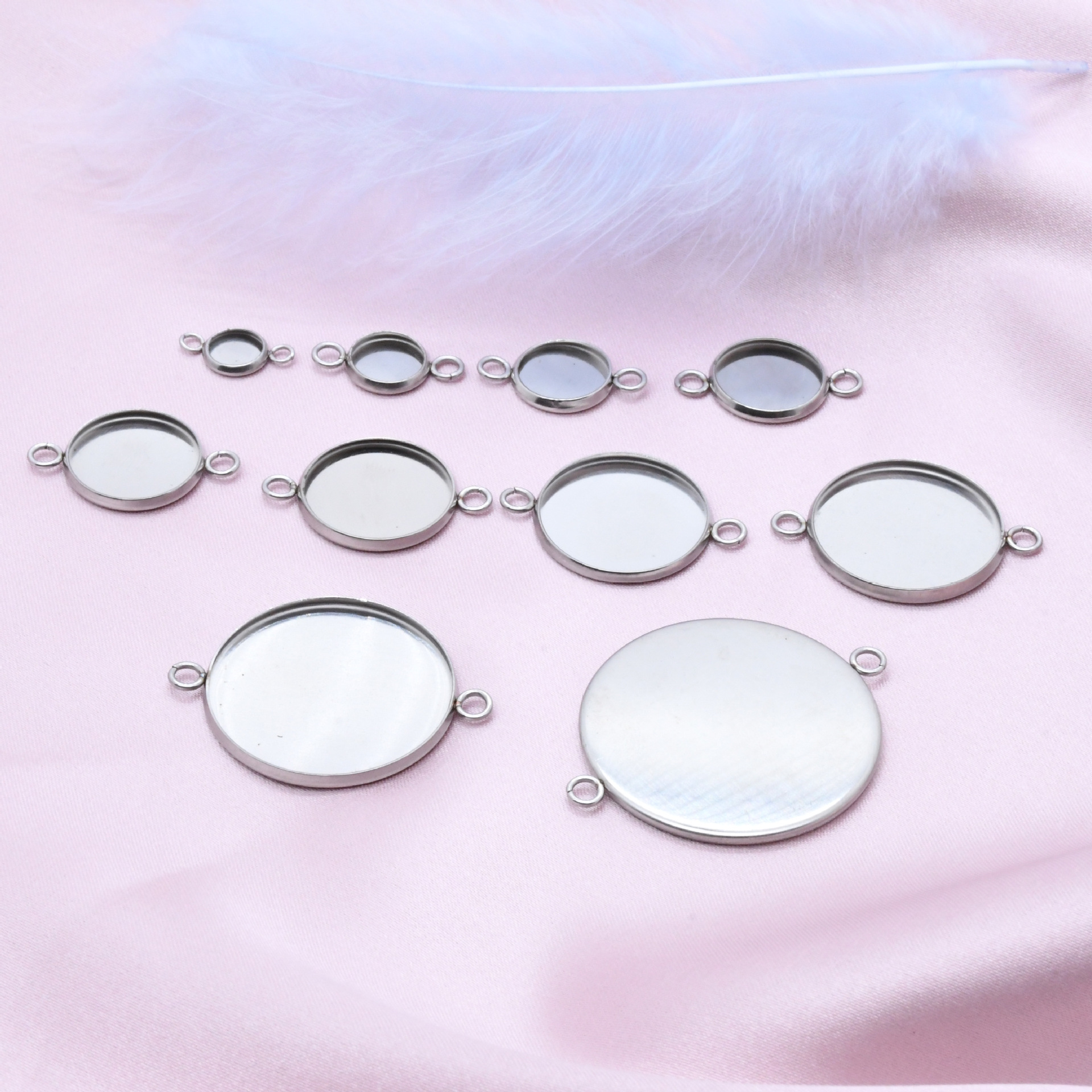 | nameOriginal | Wholesale stainless steel round welding double ring multi-specification Time Gem empty bottom support tag bracelet DIY jewelry accessories |