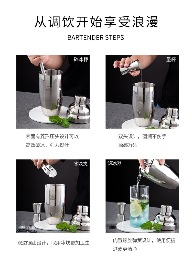 | nameOriginal | Wholesale stainless steel shaker with scale hand-made lemon tea Shaker hand-cranked wine set 304 Shaker suit |