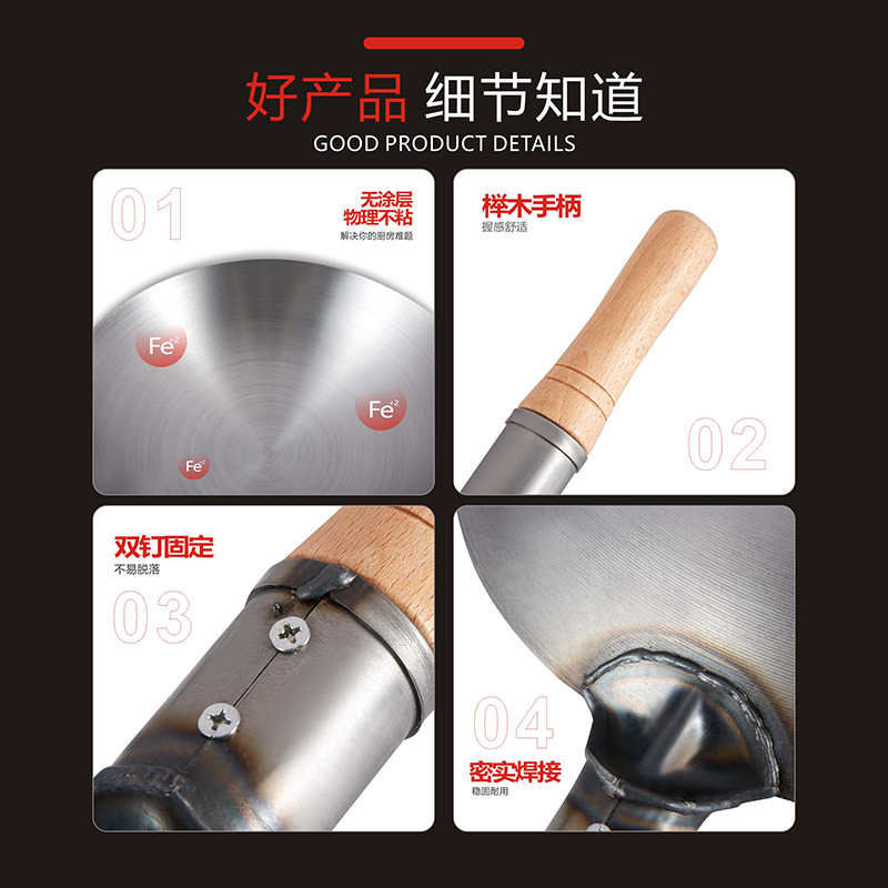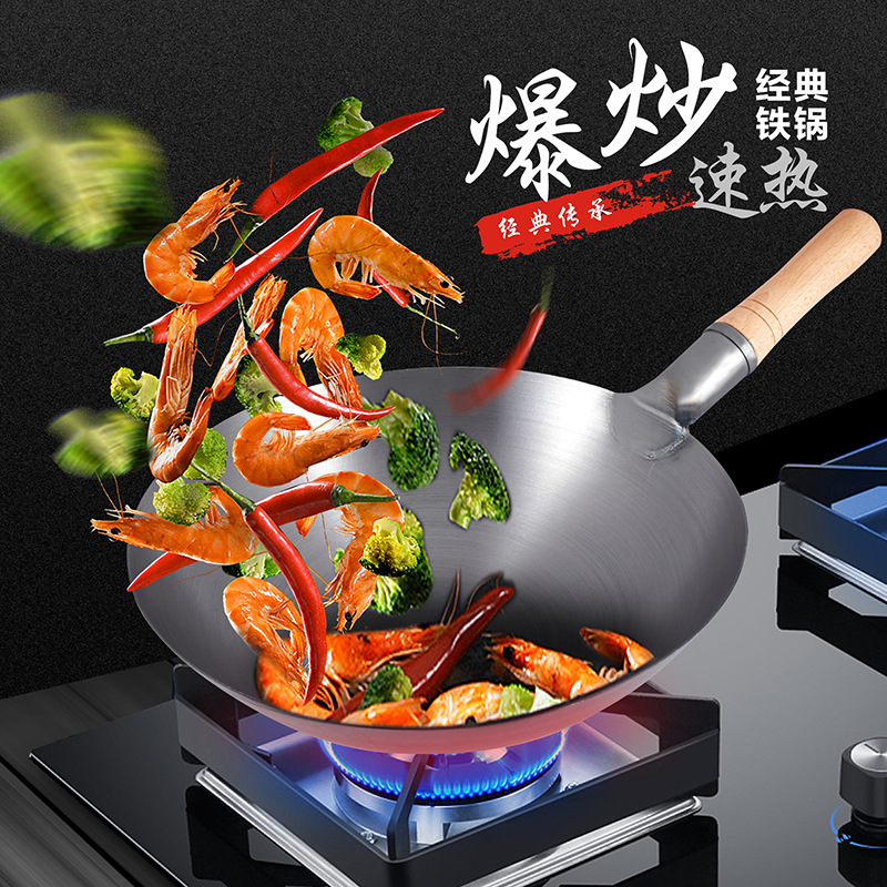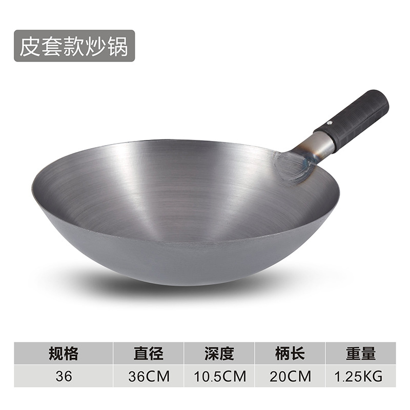 | nameOriginal | Wholesale traditional old-fashioned cooked iron pot steel plate pot wooden handle uncoated wok round bottom refined iron pot commercial wok spoon fried powder  |