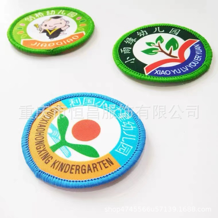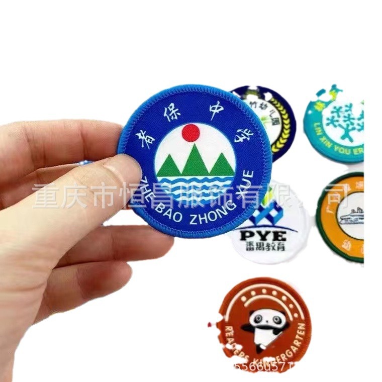Wholesale transfer printing campus logo washing badge Velcro lock edge round logo source direct supply woven printing school uniform logo