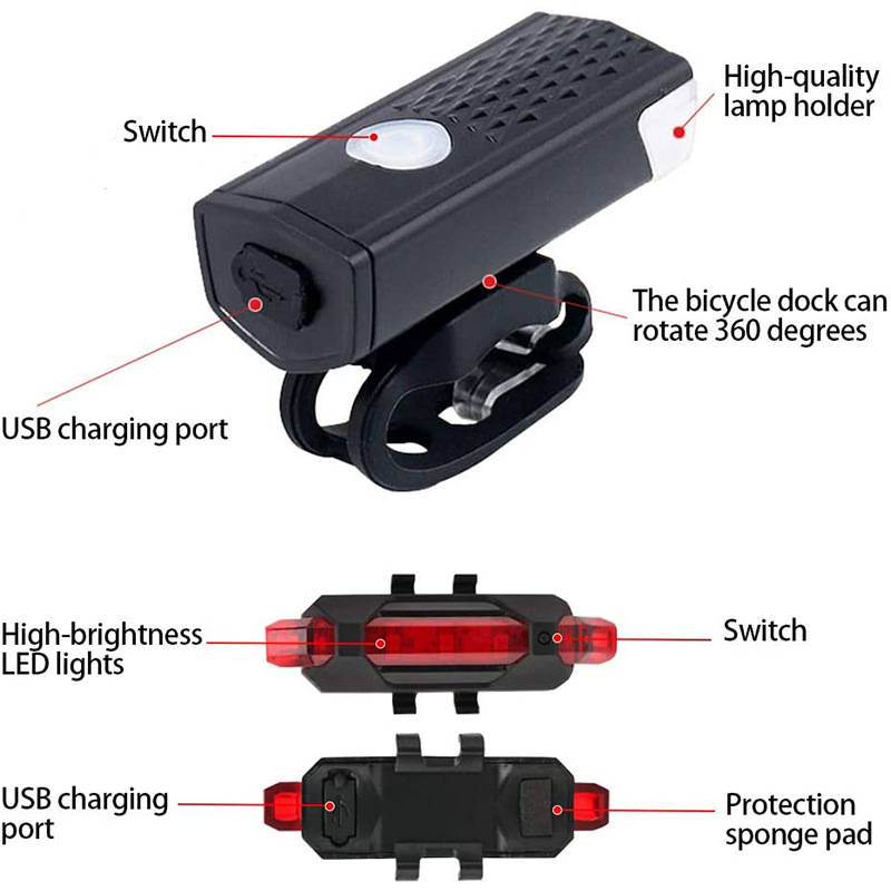 Wholesale USB rechargeable cycling bicycle headlight bright light tail light set waterproof [factory spot quick hair]]