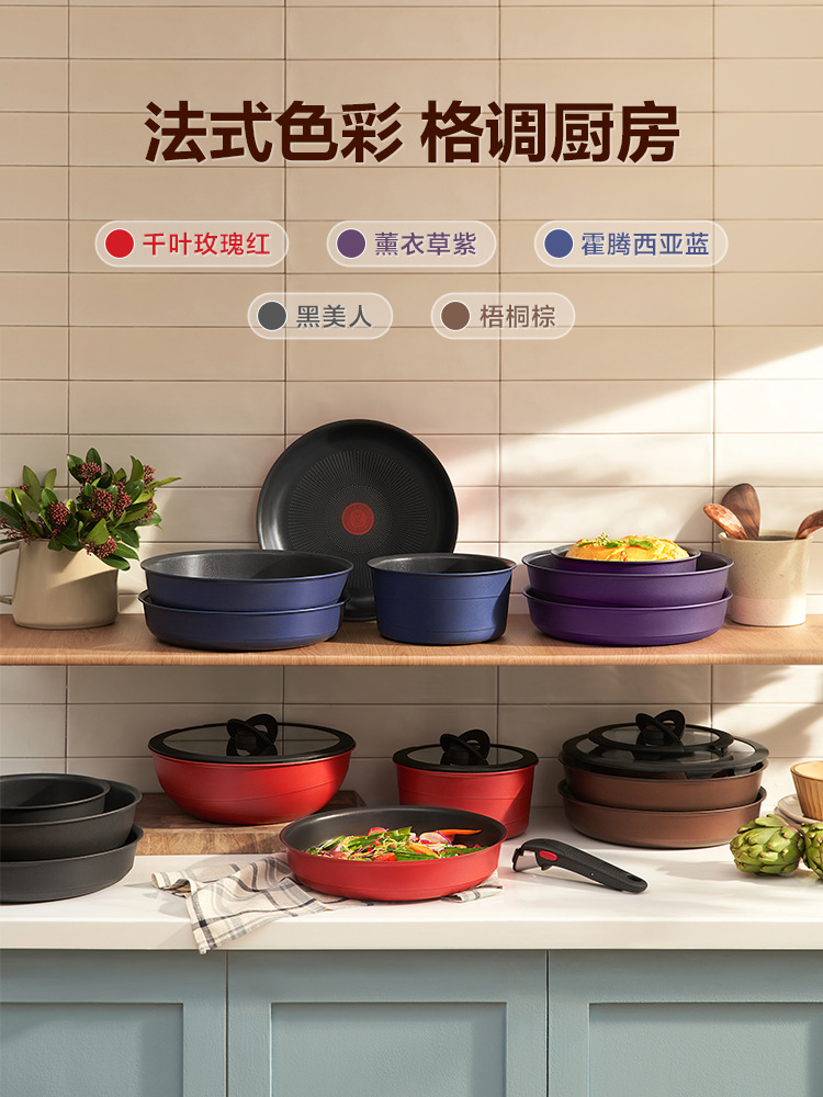 Wholesale variety pot removable six-piece non-stick frying pan set household kitchenware induction cooker Universal