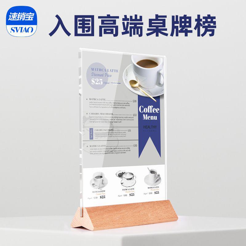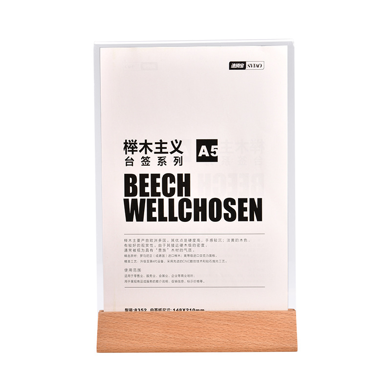 | nameOriginal | Wholesale wooden solid wood double-sided table card stand display card a4 acrylic restaurant dining card a5 table card stand water card |