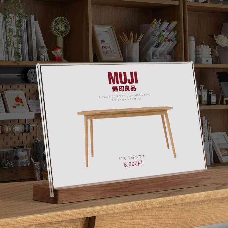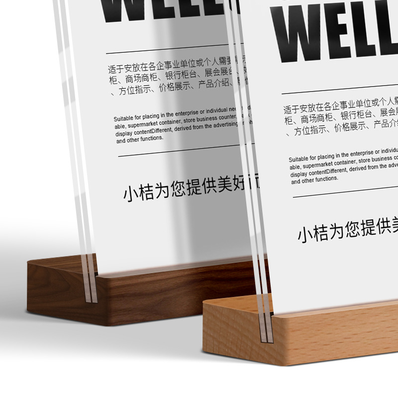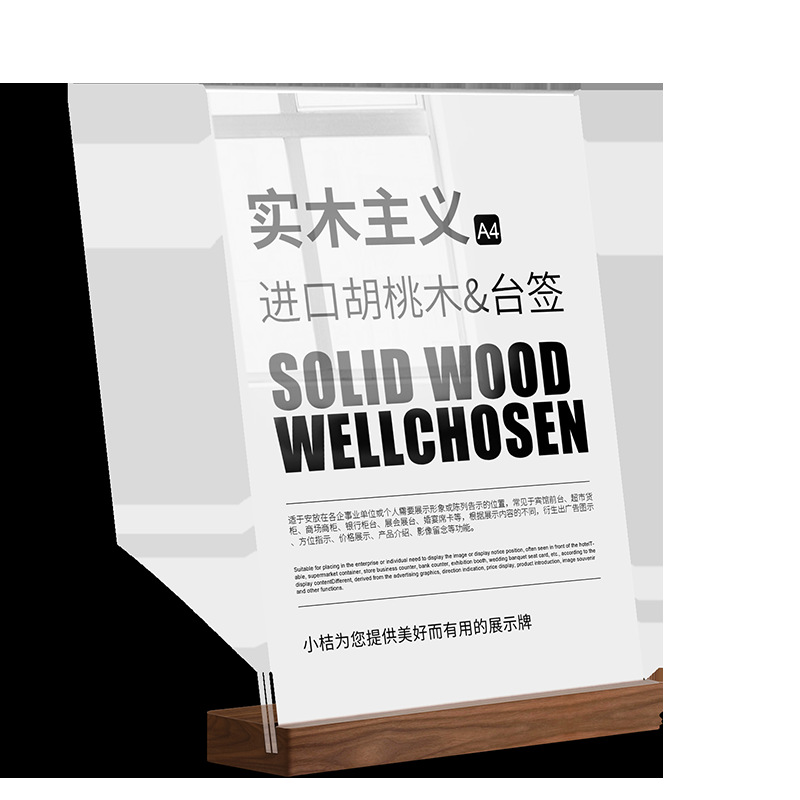 | nameOriginal | Wholesale wooden table card display board table card standing acrylic table card a4 solid wood base desktop display stand price |