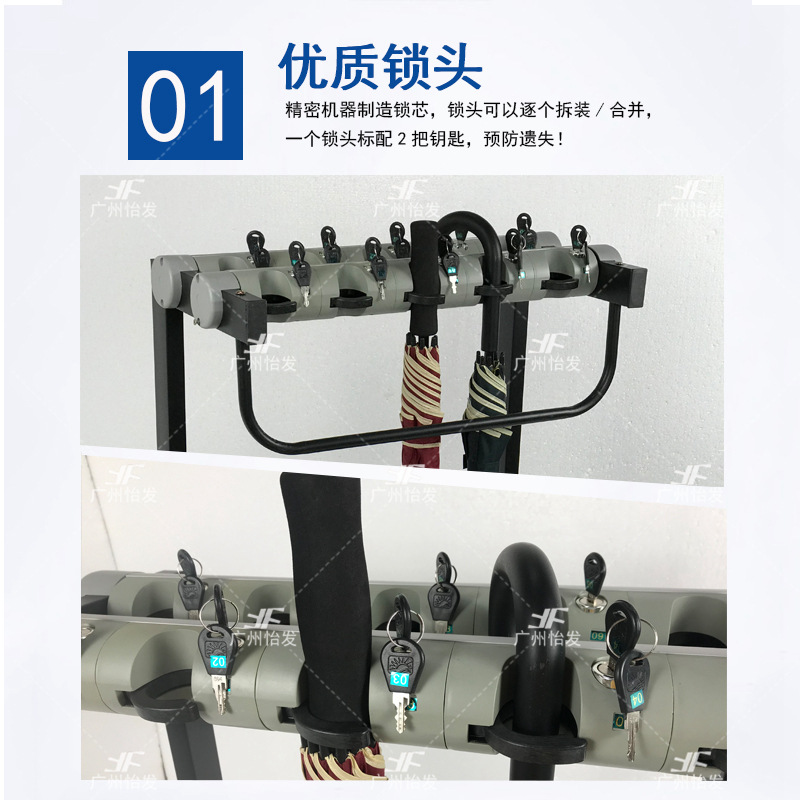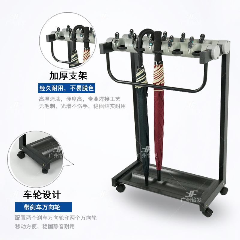 | nameOriginal | Wholesale wrought iron 12 head paint umbrella rack with lock hotel supermarket bank umbrella rack convenient umbrella storage rack |
