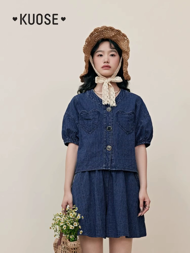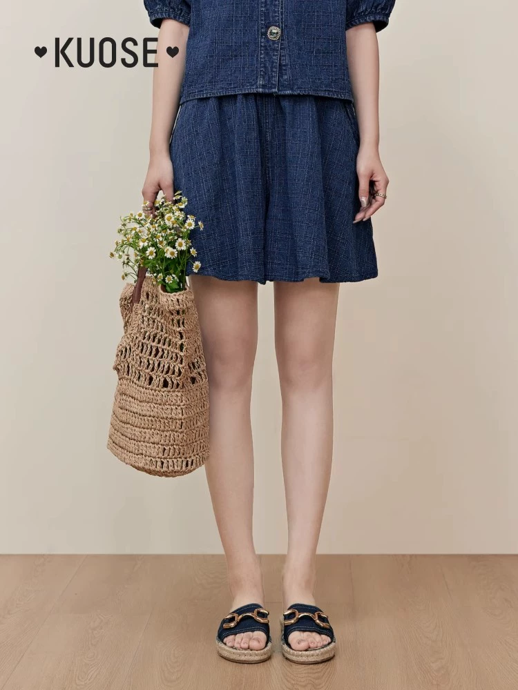 | nameOriginal | Wide color denim shirt two-piece suit skirt spring and summer short sleeves |