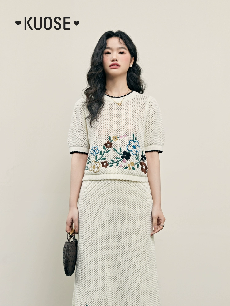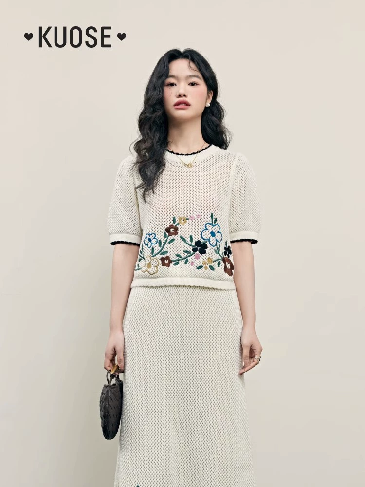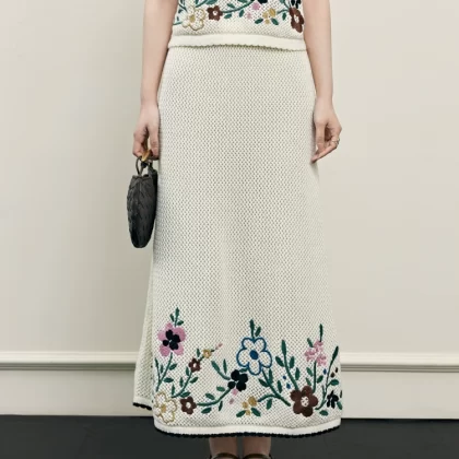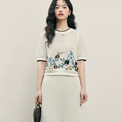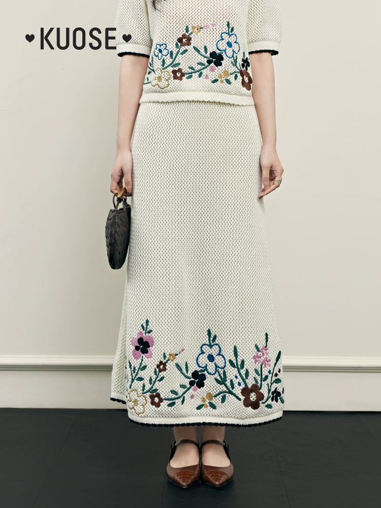 Wide color two piece suit skirt sweater T-shirt embroidery