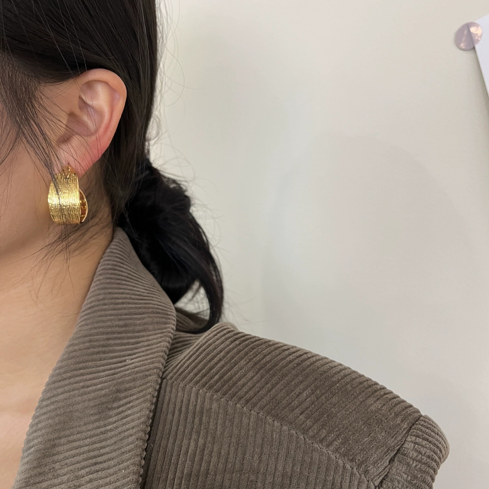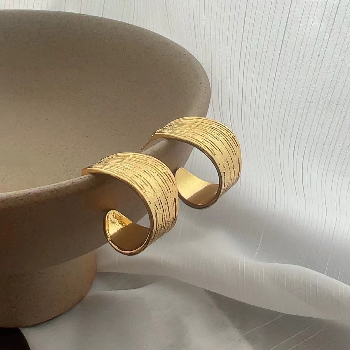 | nameOriginal | Wide Face Texture Bend Heavy Industry Old Fashion Distinctive Earrings European and American Retro Gold Hoop Earrings Women's High Sense |