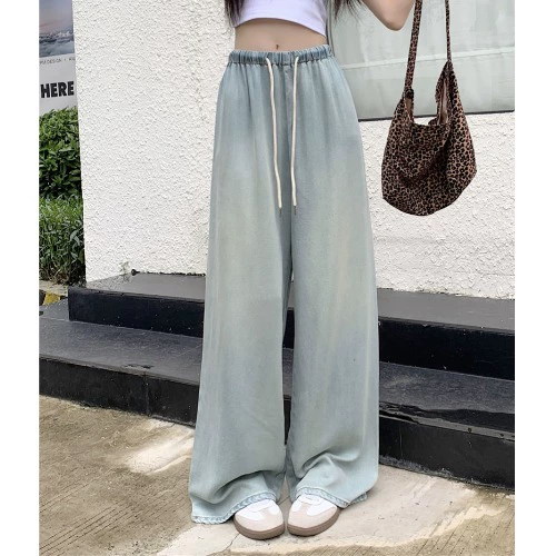 | nameOriginal | Wide-leg draped washed light blue drawstring high-waisted pants |