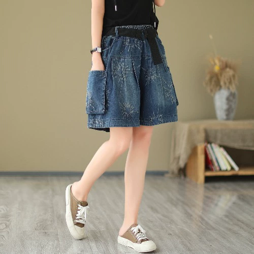 Wide-leg fat mm fashionable and versatile shorts in jacquard fashion