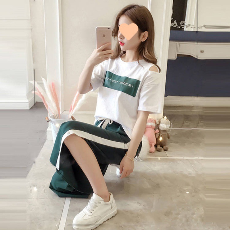 | nameOriginal | Wide Leg Pants Sportswear Casual suit Women's Summer Korean-style Slimming New Arrival Loose Student Short-sleeved Fashionable Two-piece Set |