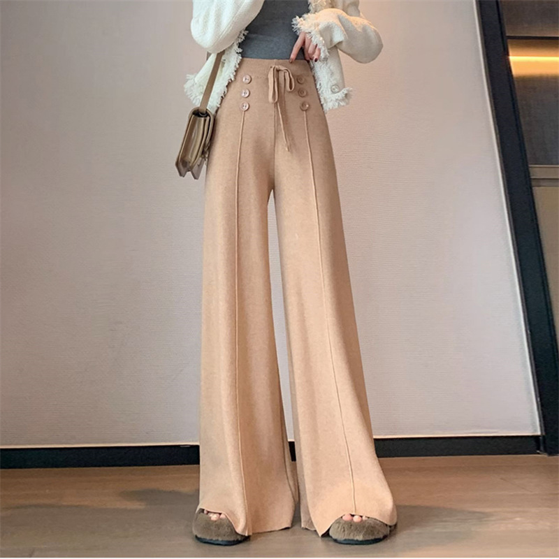 | nameOriginal | Wide Leg Pants Women's High Waist Dape Straight Loose Casual Trousers Autumn and Winter New Button Design Sense Knitted Trousers |