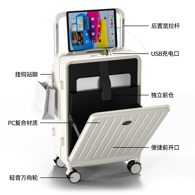 Wide Pull Rod Luggage Case Women's Front Opening Small Silent 20-inch Boyboarding Case Multifunctional Men's 24-inch Password Suitcase