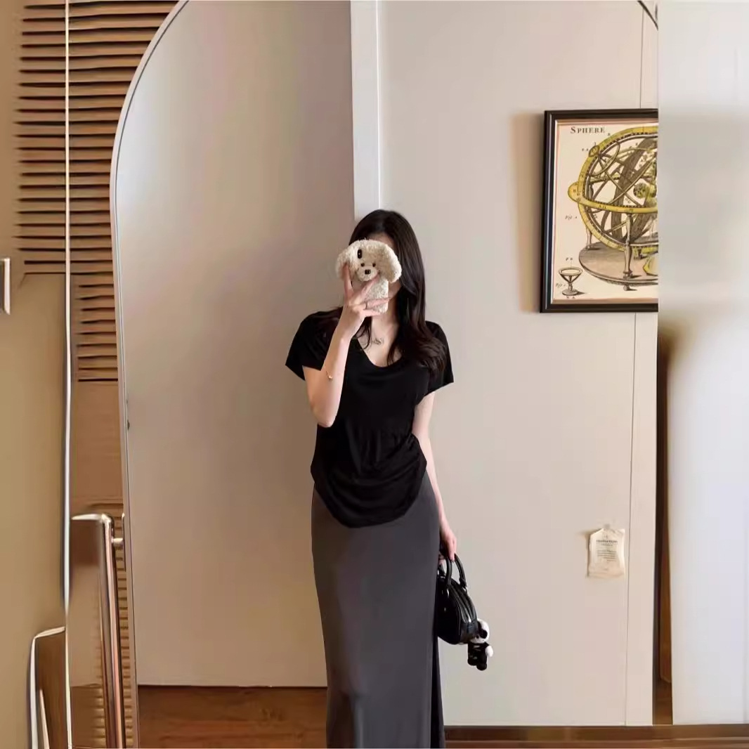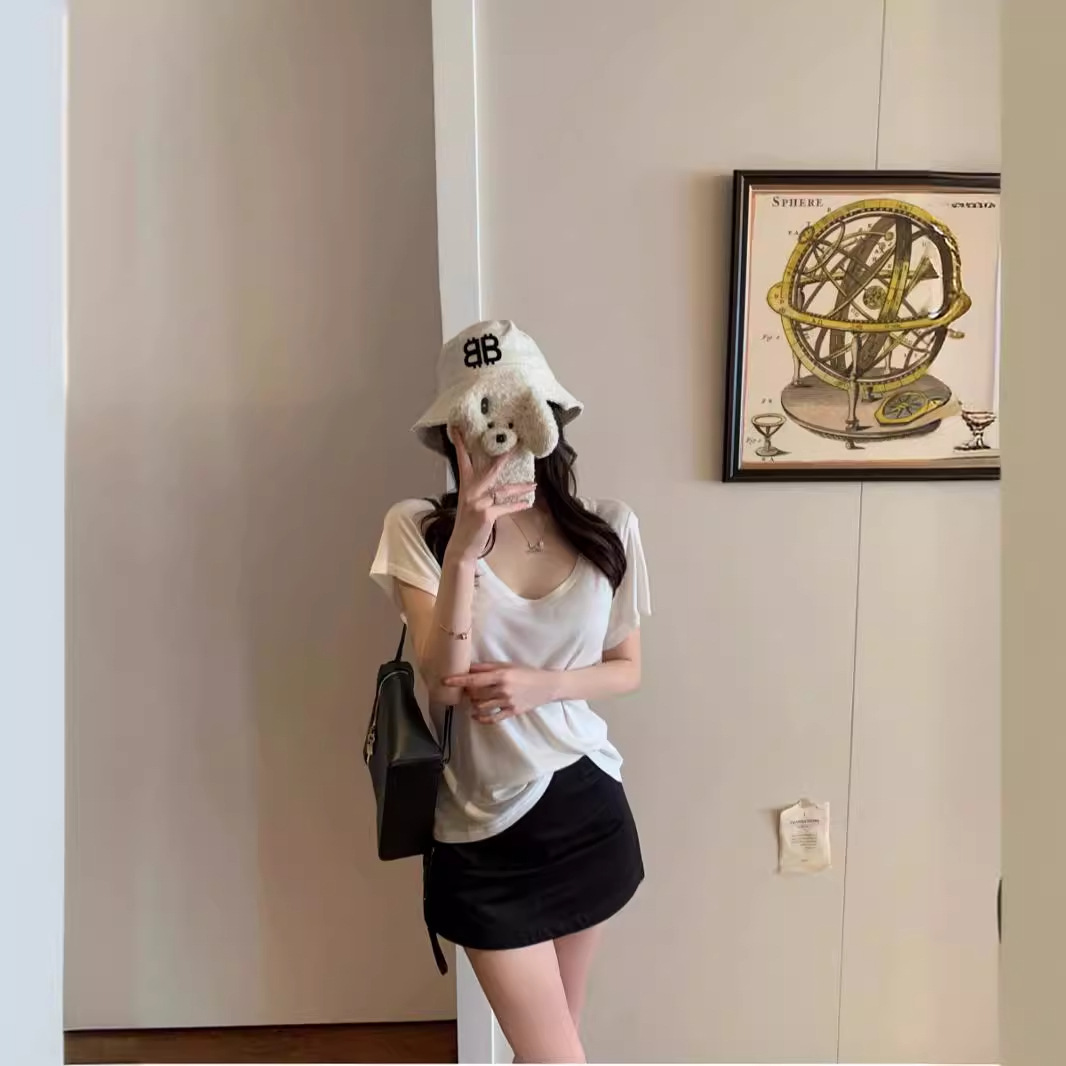 | nameOriginal | Wide Pure and Micro-transparent T-shirt Women's Basic All-match Large U-neck Thin Small Top |