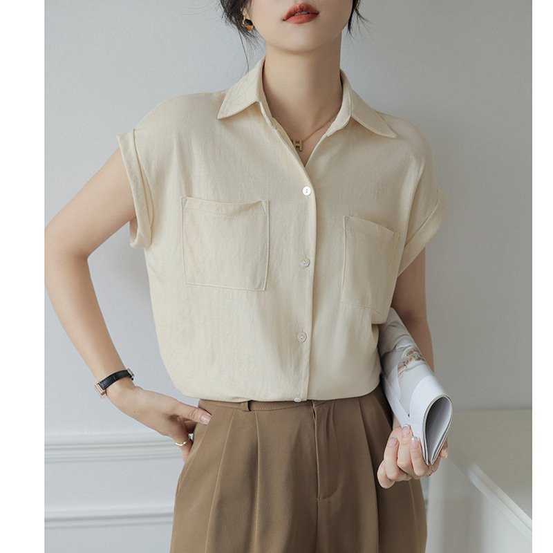 | nameOriginal | Wide-shoulder Sleeveless Lapel Thin Shirt Women's 2024 Summer New Korean Style Elegant Commuting Loose Shirt Top |