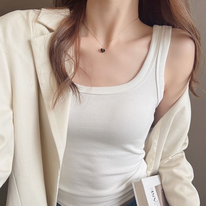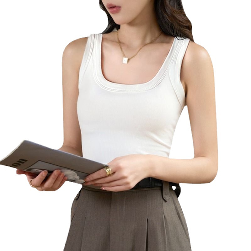Wide Shoulder Square Collar Camisole Women’s Outer Wear Summer 2024 New Black and White I-character Inner Cover Breast Base Top