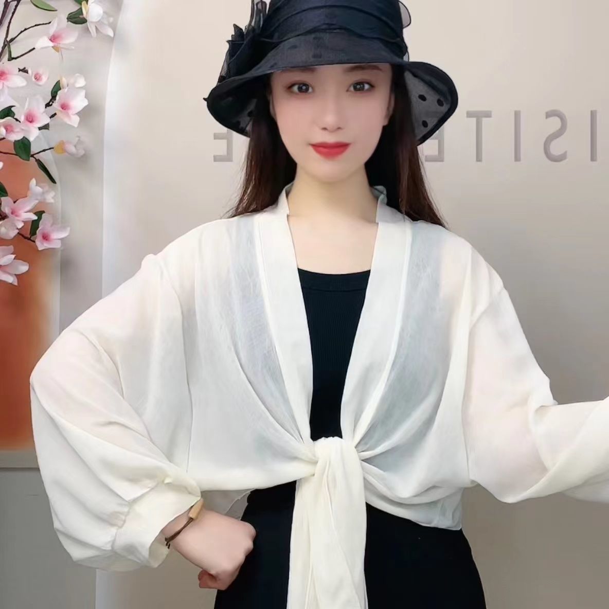 | nameOriginal | [Wide-sleeved sunscreen clothing] Simple wide-sleeved sunscreen shawl women's turtle crack Ice Silk cool fashion loose sunscreen clothing |