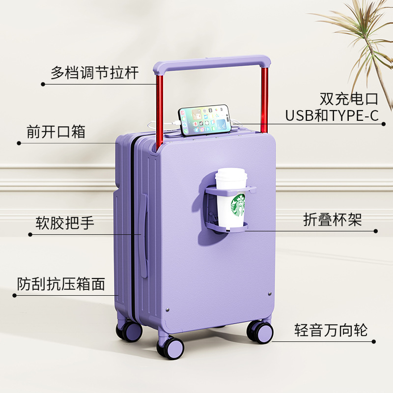 | nameOriginal | Wide trolley luggage Women's 2023 new trolley case 20-inch front opening password box men's large capacity travel box |