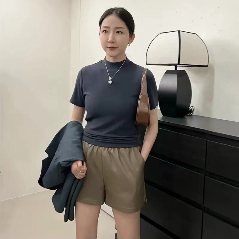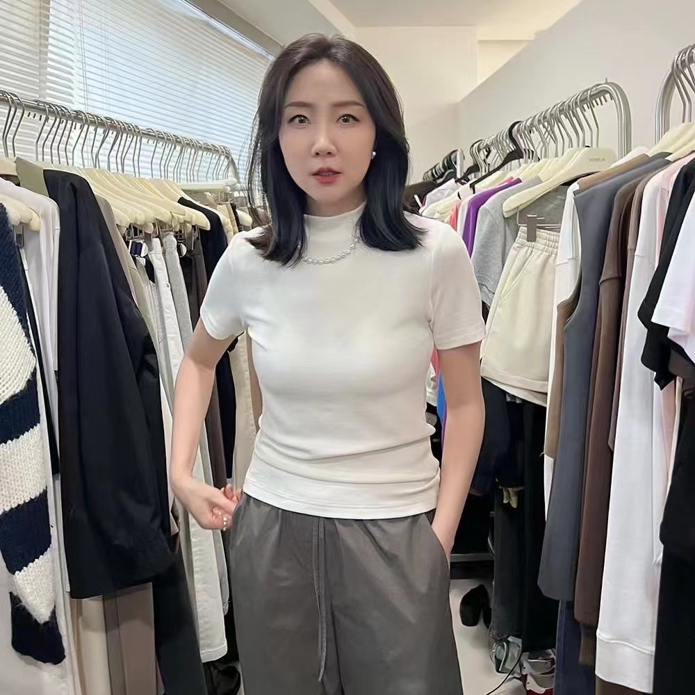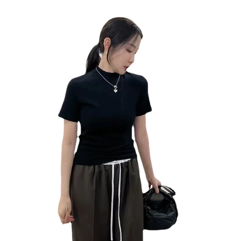 | nameOriginal | Wife of shop-owner with small stand collar short sleeve T-shirt new fashion versatile top half high collar slim base shirt women's summer |