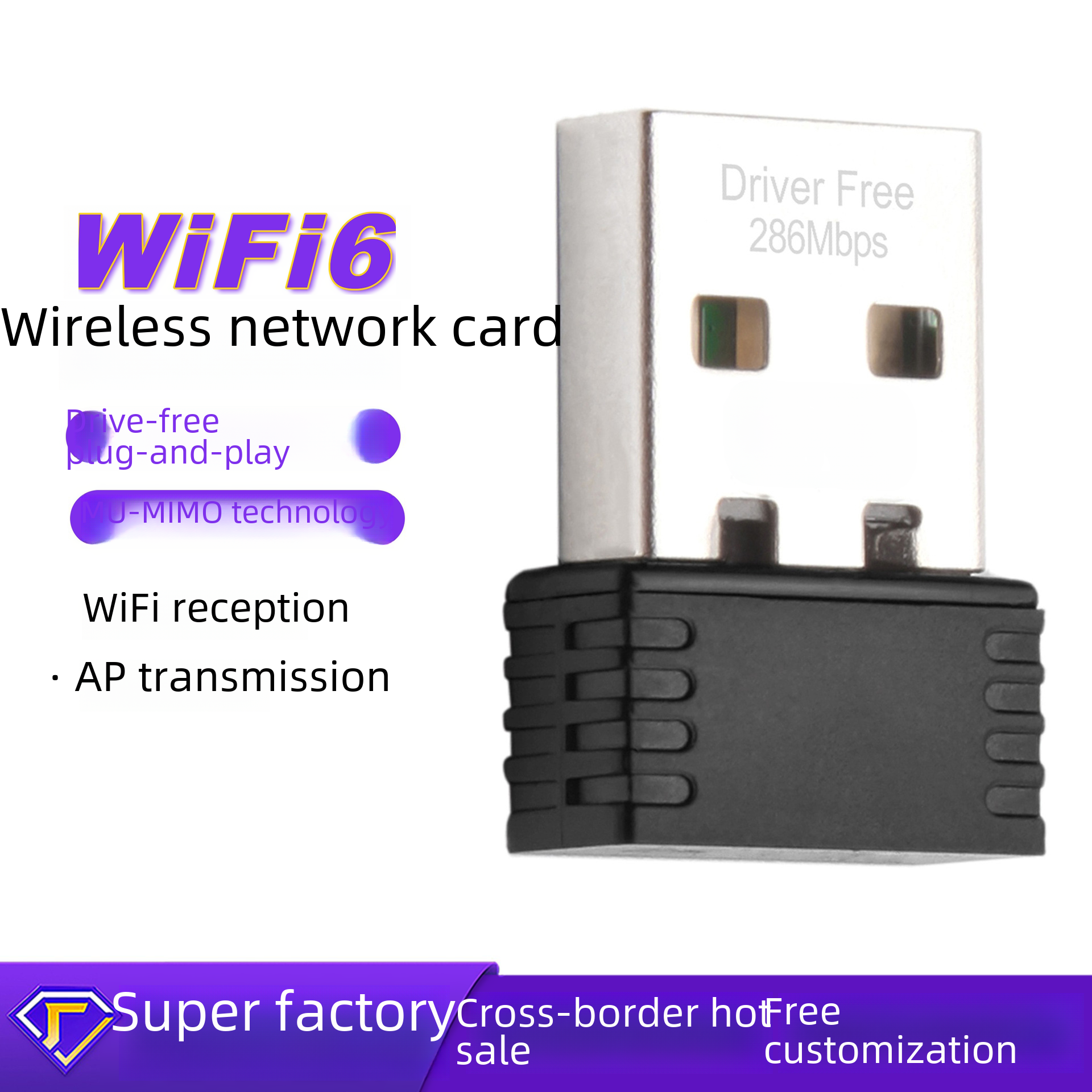 | nameOriginal | WiFi6 drive-free USB wireless network card desktop computer 300m Mini Wireless WiFi receiver transmitter |