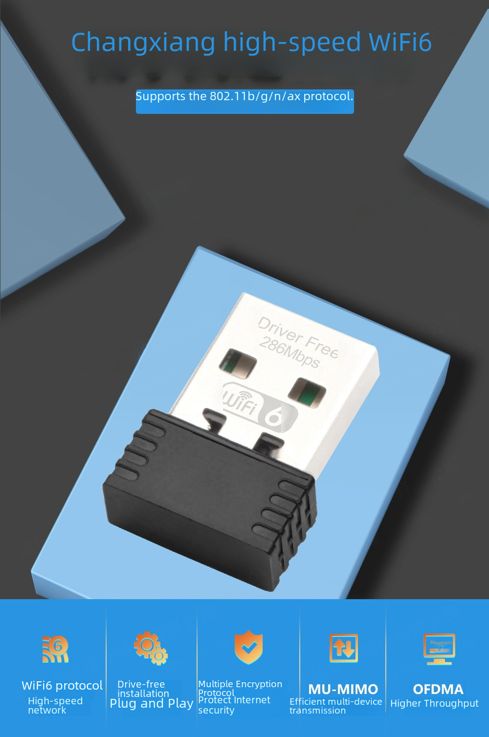 | nameOriginal | wifi6 wireless network card drive-free desktop computer USB mini wireless WiFi receiver transmitter 300m |