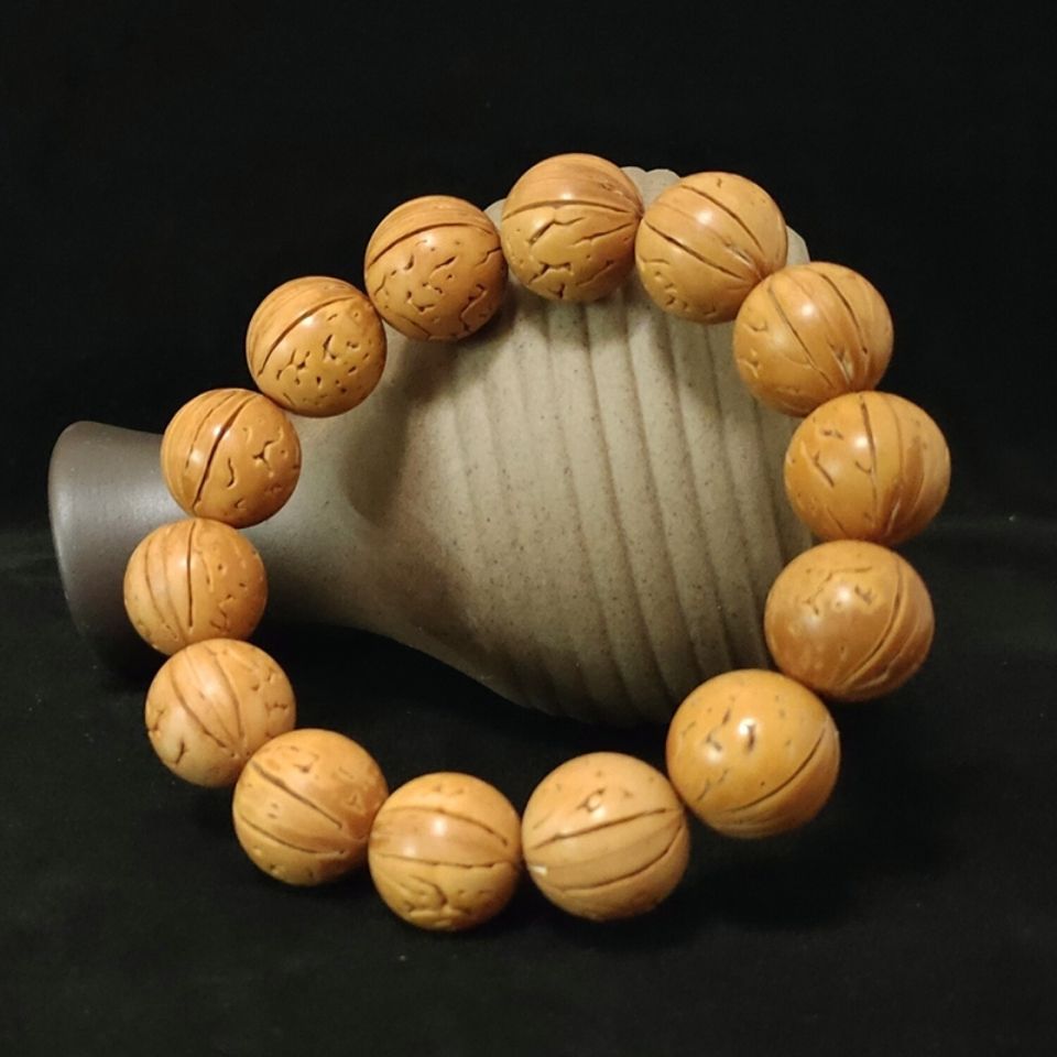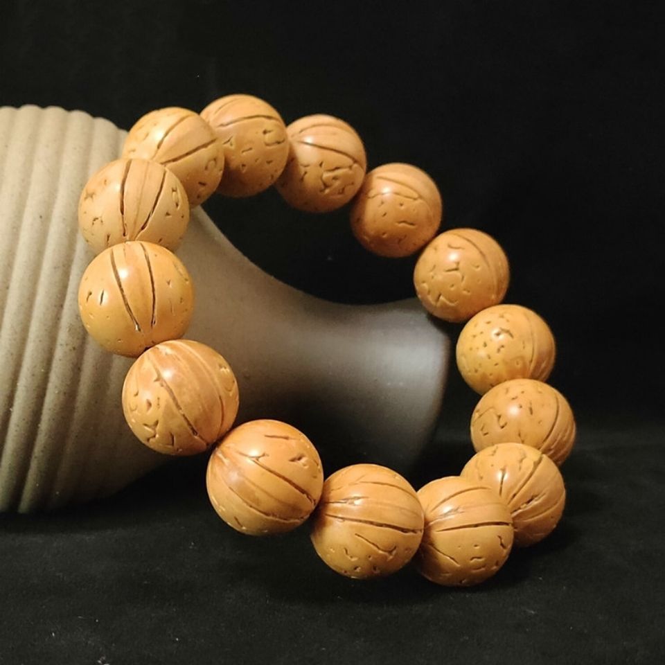 Wild peach core hand-polished round beads bracelet bracelet peach and Hu round beads rosary couple
