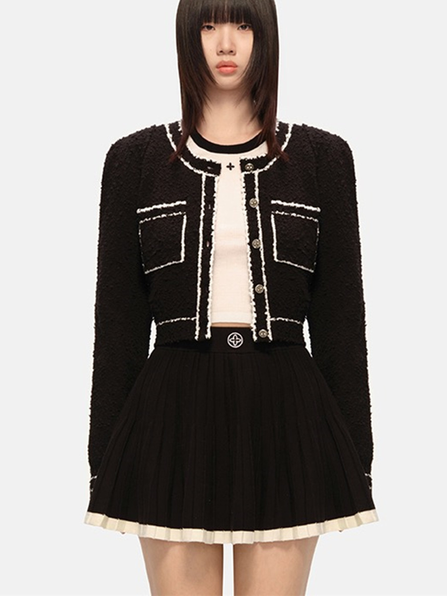 Wilderness World drama jacket 2023 spring double striped contrast color Chanel style short coat female ULS08B +