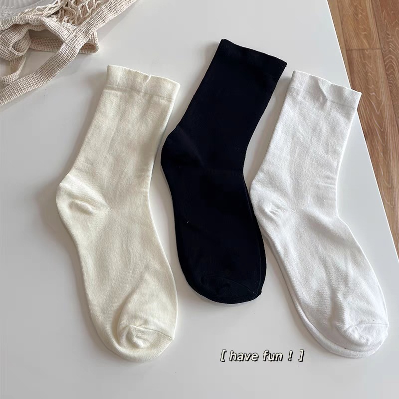 | nameOriginal | Will be into the pile of socks ~ socks women's spring and autumn solid color cotton black and white breathable high tube sweet simple ins style versatile |