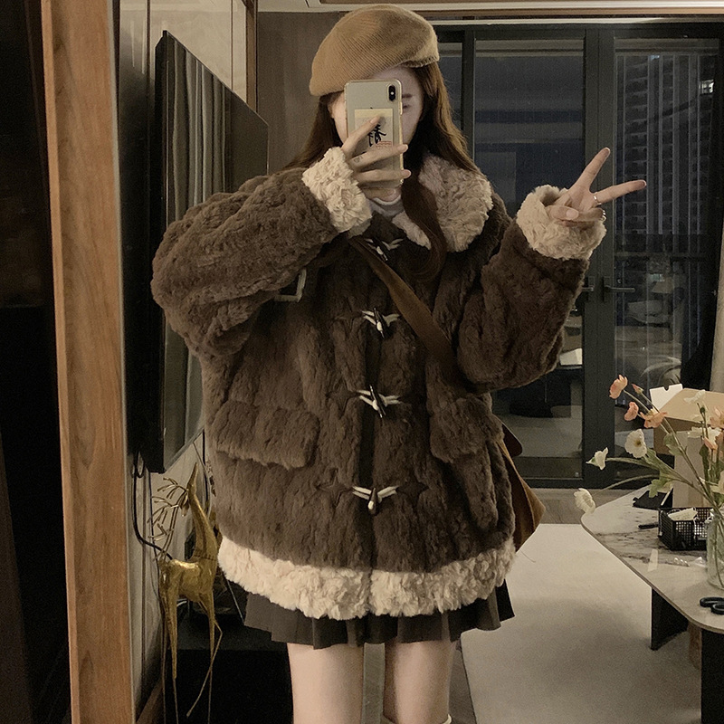 | nameOriginal | Wind horn buckle lamb wool coat for women 2023 Winter loose thick warm plush faux fur cotton coat |