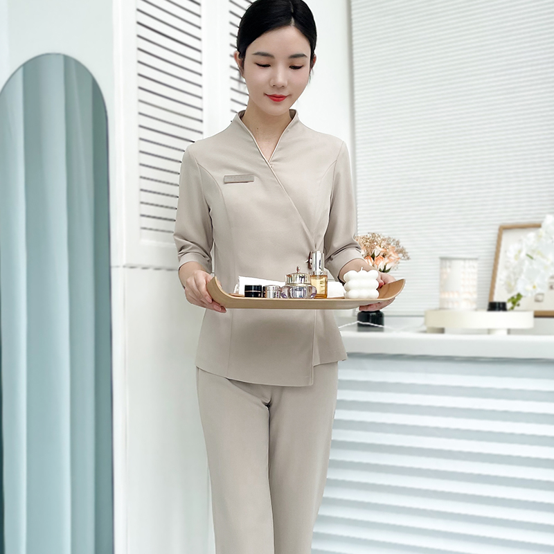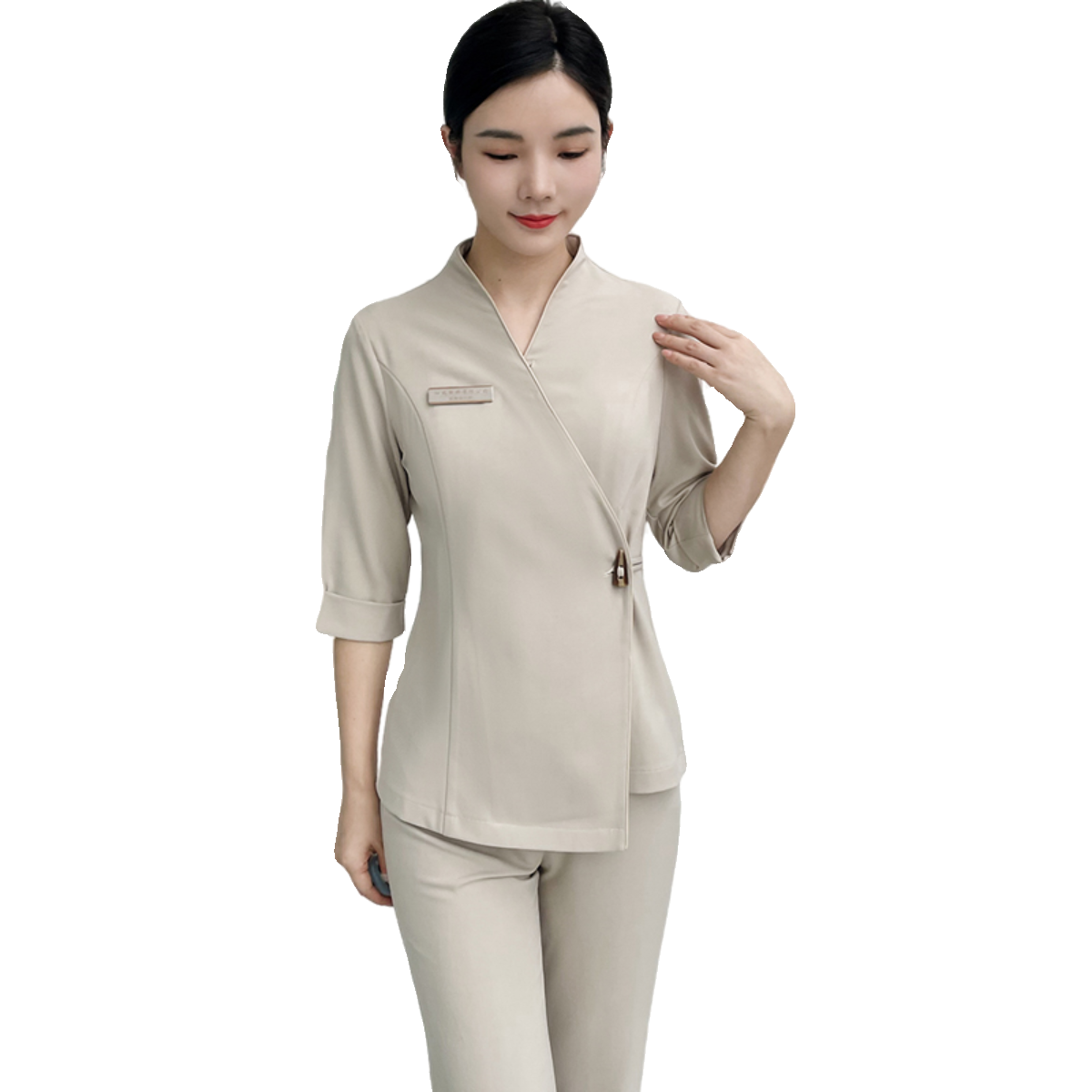 | nameOriginal | Wind-like new spa health skin management beautician pedicure technician work clothes elastic suit breathable seven-point sleeve |
