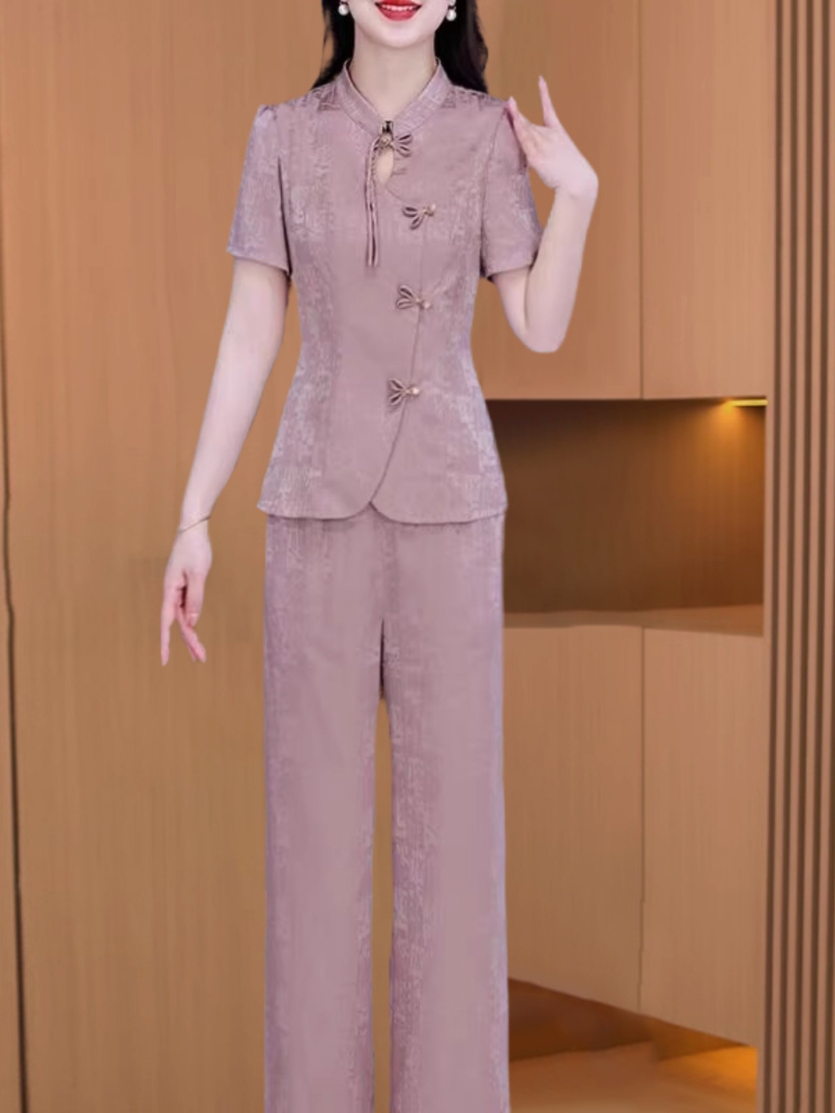 | nameOriginal | Wind new Chinese cheongsam suit women's 2024 new summer age-reducing fashion foreign style mother ice silk two-piece set |