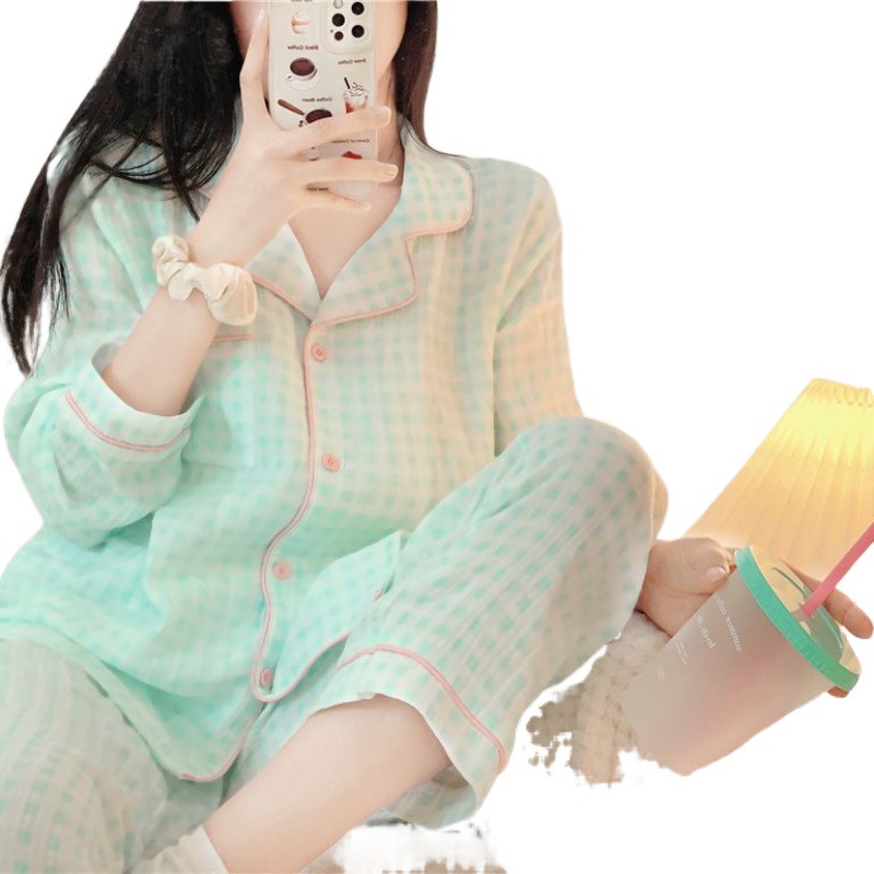 | nameOriginal | Wind Pajamas Women's Spring and Autumn New Cardigan Long Sleeve Simple Plaid Student Dormitory Home Clothes suit Outer Wear |
