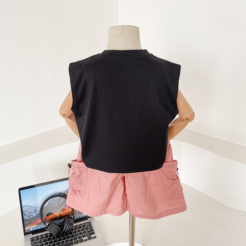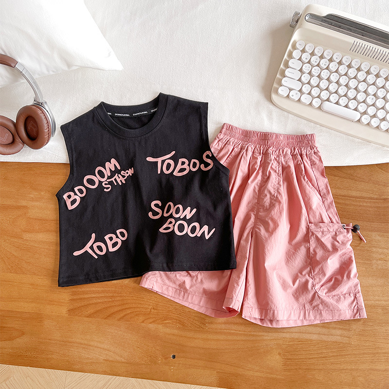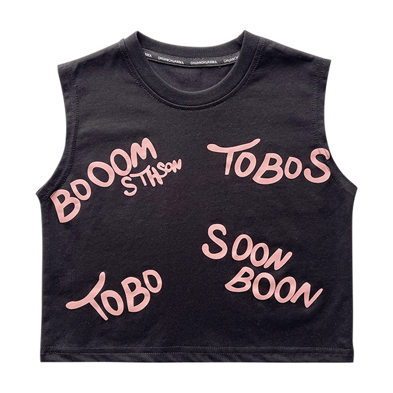 Wind Valley 2024 Summer New Children's Wear Korean Handsome Contrast Color Letter Vest for Boys All-match Sleeveless T-shirt