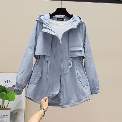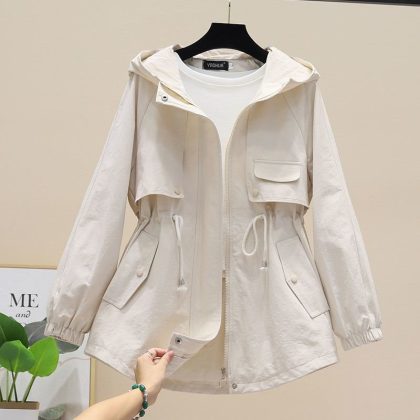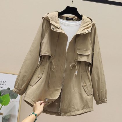 | nameOriginal | Windbreaker Coat Women's 2022 Spring and Autumn New Drawstring Tight Waist Slimming Mid-length Windproof Loose plus size Casual Top |