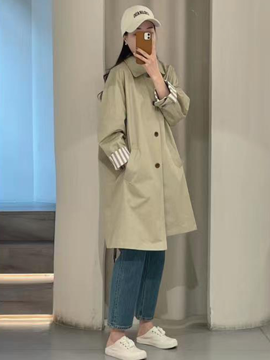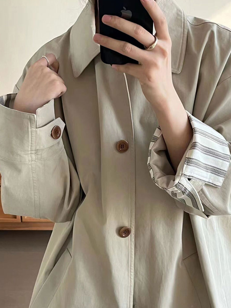 | nameOriginal | Windbreaker Coat Women's 2024 Spring New Stitching High-end Sense Japanese Tooling Simple Small Mid-length Coat |