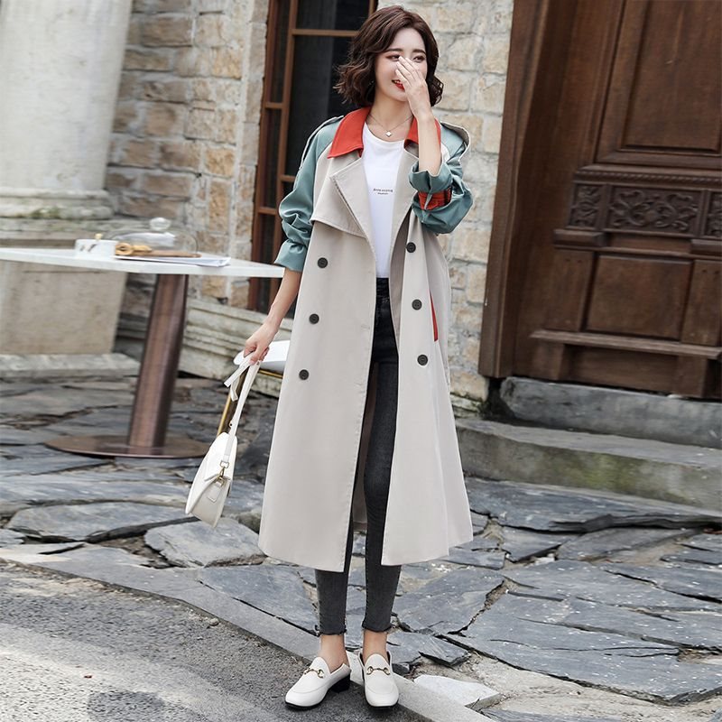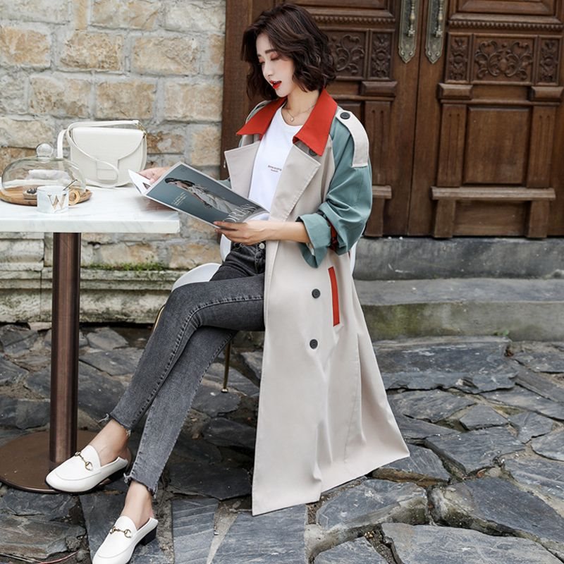 Windbreaker Women's Mid-length British Style 2023 Autumn New Loose All-match Age-reducing Slim-plus size Stitching Coat Women