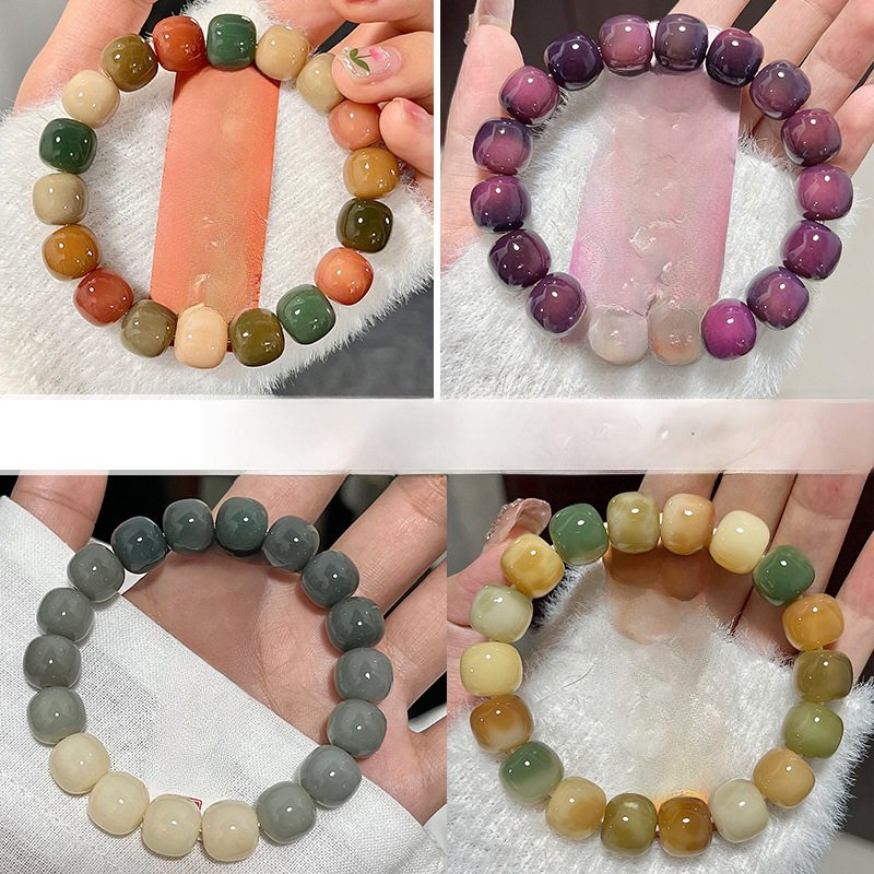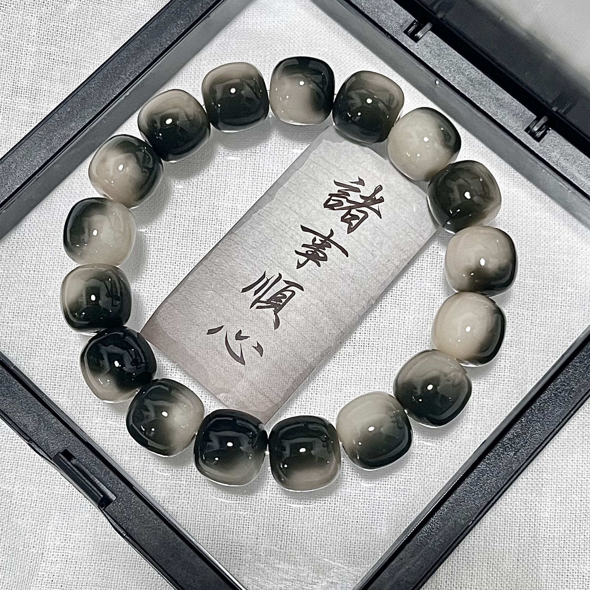 Winding soft Bodhi root bracelet wholesale gradient green floating flower smoky gray old Bodhi bracelet Wenwan Buddha beads