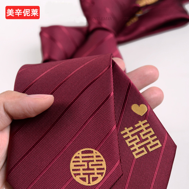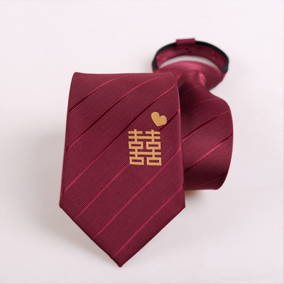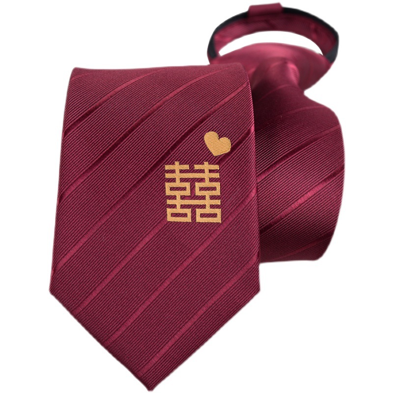 | nameOriginal | Wine red tie 8cm knot-free zipper wedding trendy Korean style wedding bridegroom embroidered double Xi tie for men |