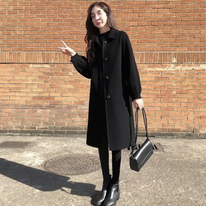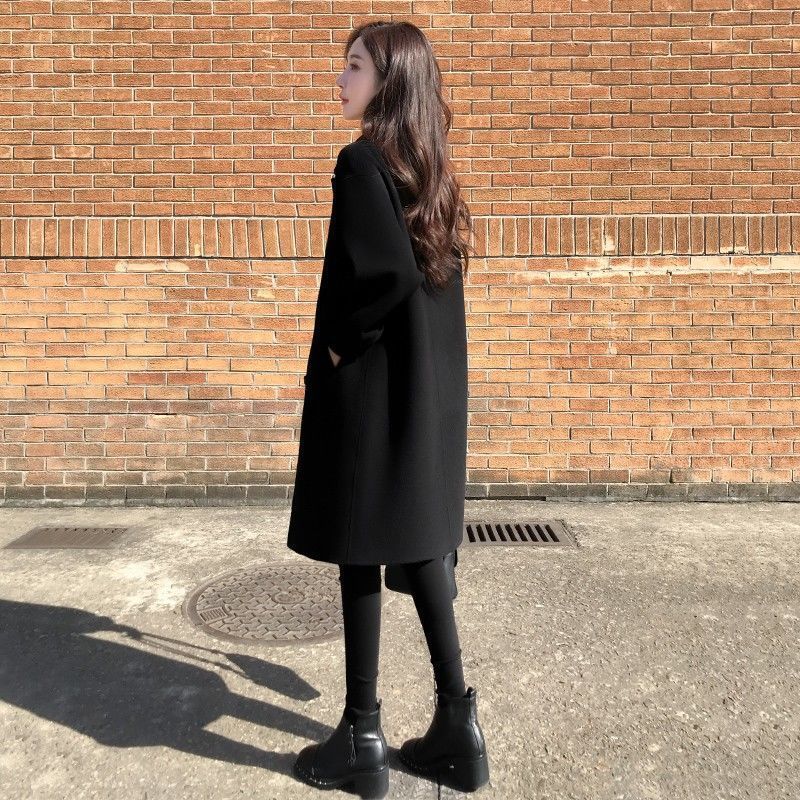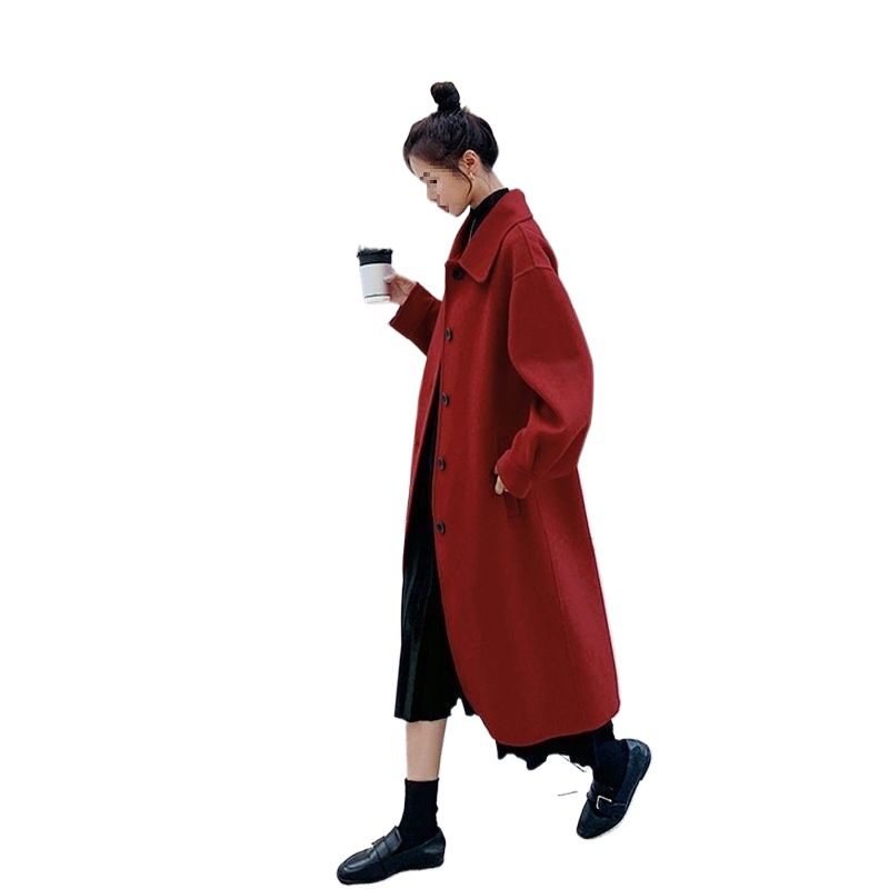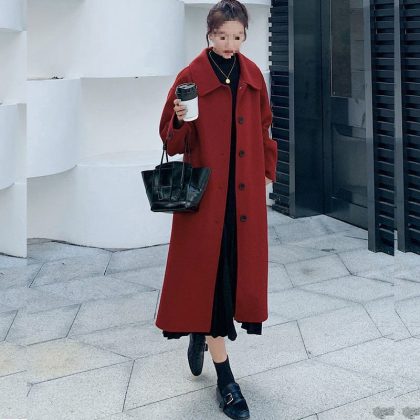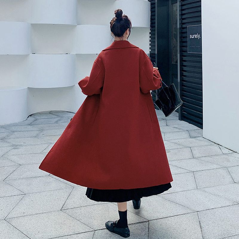 | nameOriginal | wine red Woolen Coat Women's Mid-length 2022 New Autumn and Winter Loose Slimming Black Cotton Woolen Coat |