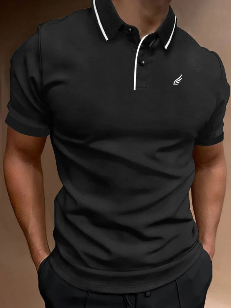 Wing Print Polo Shirt for Men with Contrast Trim by SHEIN.