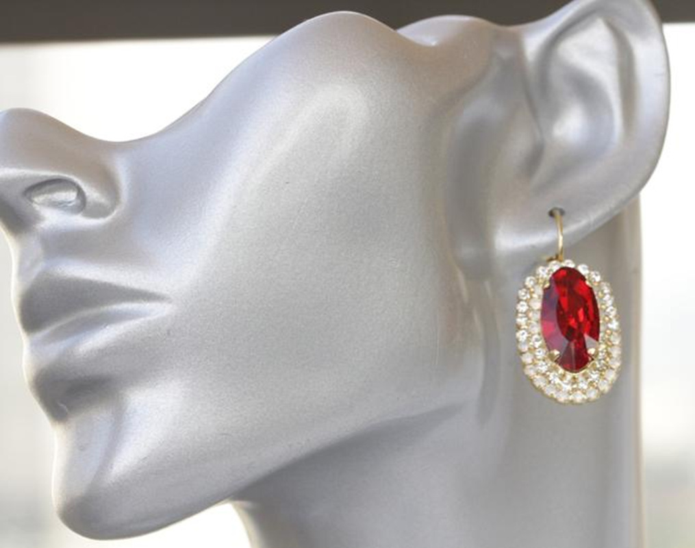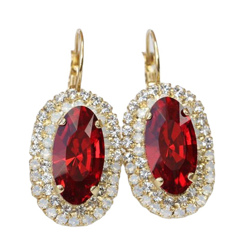 | nameOriginal | Winnie cross-border hot jewelry golden red oval gem inlaid white diamond earrings simple women's wholesale |