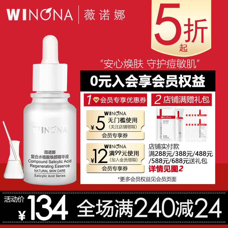 Winona Compound Salicylic Acid Rejuvenating Essence 30ml removes acne marks, closes acne, and refines pores.