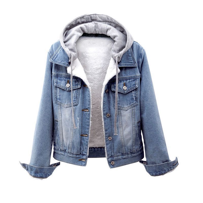 Winter 2023 Korean version of Denim plus velvet coat women’s short thick detachable hooded cotton-padded warm lamb wool cotton-padded jacket