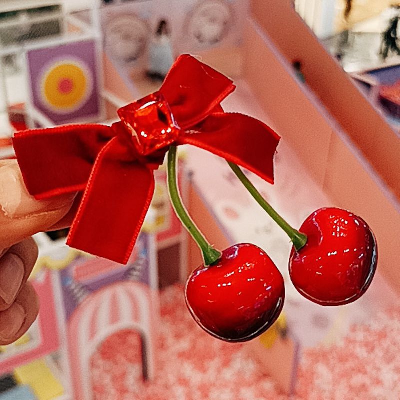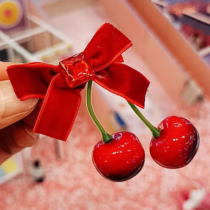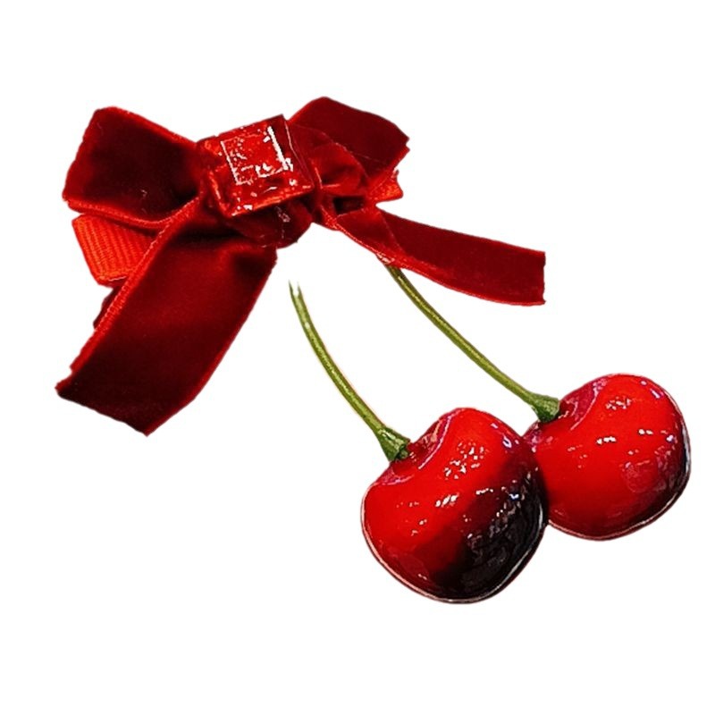 Winter atmosphere red cherry bow velvet hairpin female back half tie hair clip headdress hair accessories